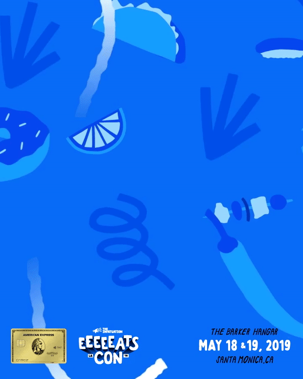 Event branding and illustrations for The Infatuation’s East Coast and West Coast EEEEEATSCON festivals in 2019, including a hand-painted mural/plywood sculpture installation, environmental graphics, print materials, way-finding signage, social content, and animation.